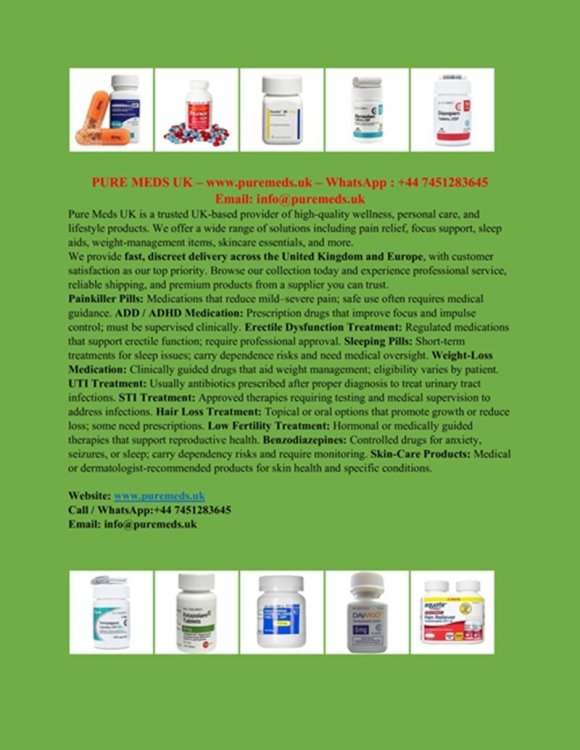 Buy Adderall XR Online UK - Verified UK Supplier - Call / WhatsApp:+44 7451283645 - Website: www.puremeds.uk - Email: info@puremeds.uk Pure Meds UK is a trusted UK-based provider of high-quality wellness, personal care, and lifestyle products. We offer a wide range of solutions including pain relief, focus support, sleep aids, weight-management items, skincare essentials, and more. We provide fast, discreet delivery across the United Kingdom and Europe, with customer satisfaction as our top priority. Browse our collection today and experience professional service, reliable shipping, and premium products from a supplier you can trust. Treatments for Pain, ADD / ADHD , Erectile Dysfunction, Sleeping, Weight Loss, Urinary Tract Infection, STI Treatment, Hair loss Treatment, Low Fertility Treatment, Benzodiazepines & Skin Care Product all available. -